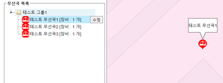 무선국 목록에서 선택된 무선국의 마커가 지도에 표시됩니다.