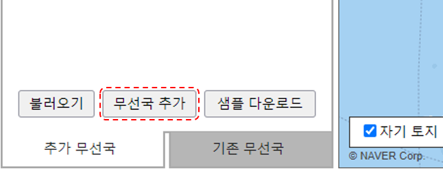 무선국 목록하단의추가 무선국탭에서무선국 추가버튼을 클릭합니다.