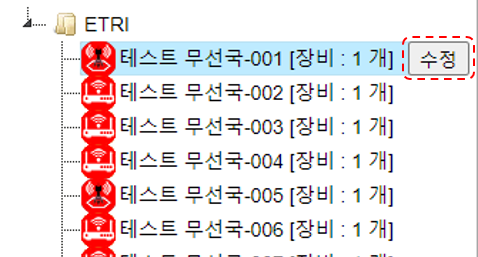 무선국 목록에서 무선국을 선택하고, 선택된 무선국 옆에수정버튼을 클릭합니다.